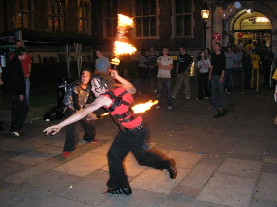 Fair Sept 2004/5/6@ Newcastle Uni. Stilts, New fire sword fight routine. Poi contact